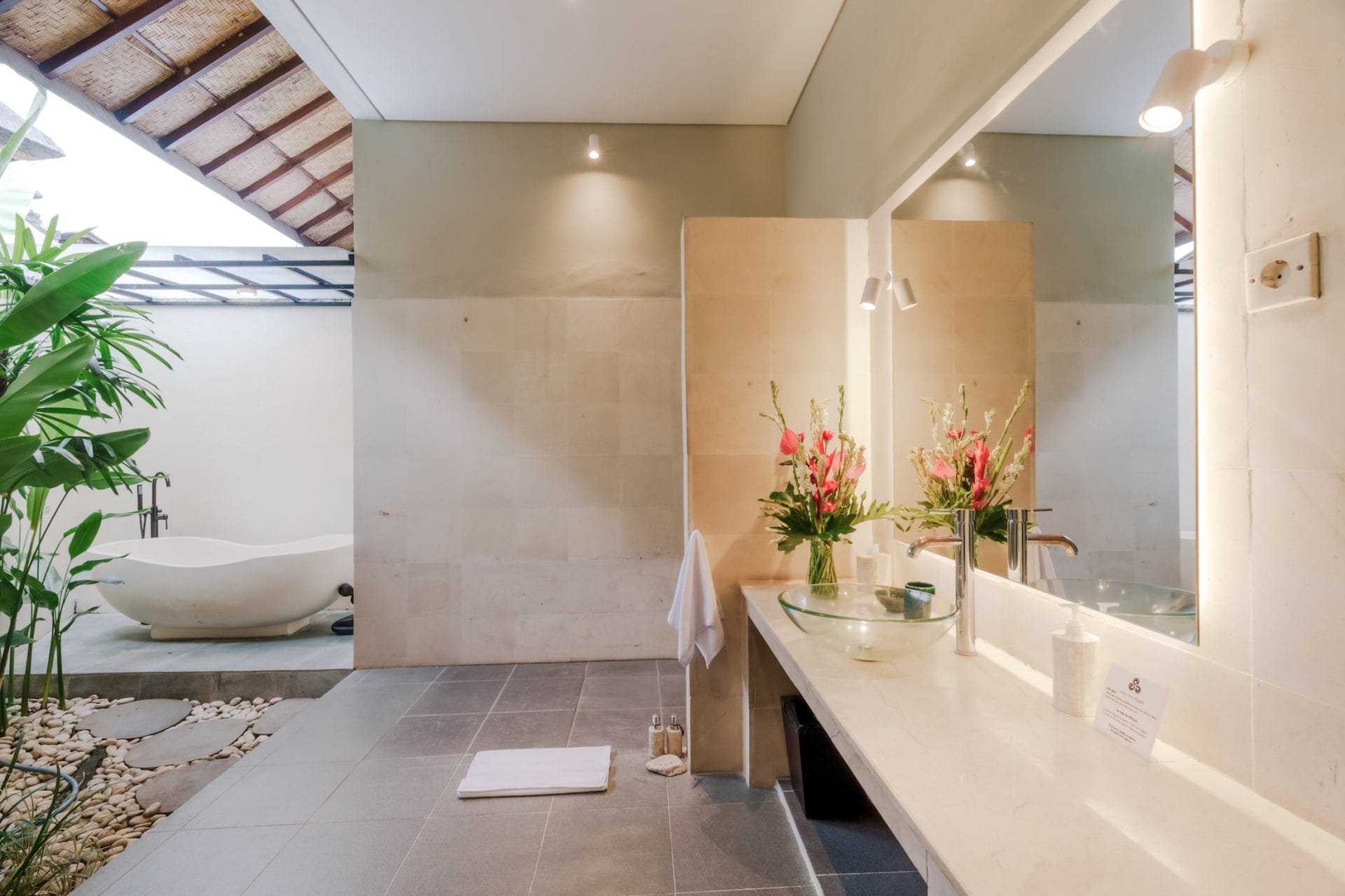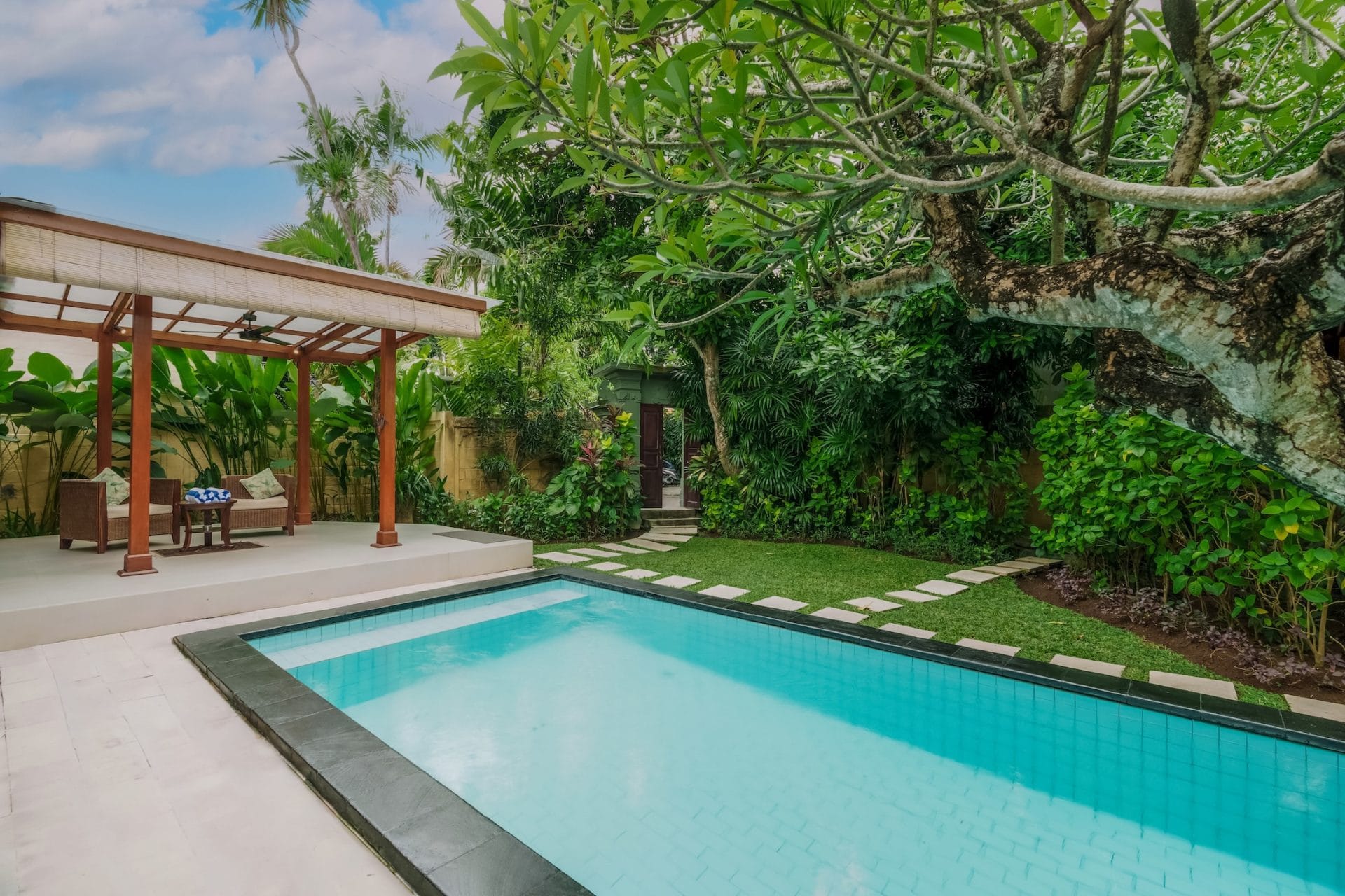 The name of the villa is translated to secret garden and that is what it is. The villa is set in a nice green garden with a wonderful pool. It is very peaceful and quiet which is nice after a day being out and about. The indoor outdoor living setup is done very nicely. The common area is outdoor and the two spacious bedrooms are comfortable and both have their own private semi outdoor bathrooms.